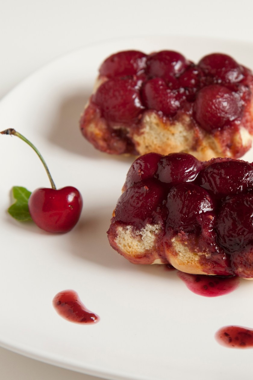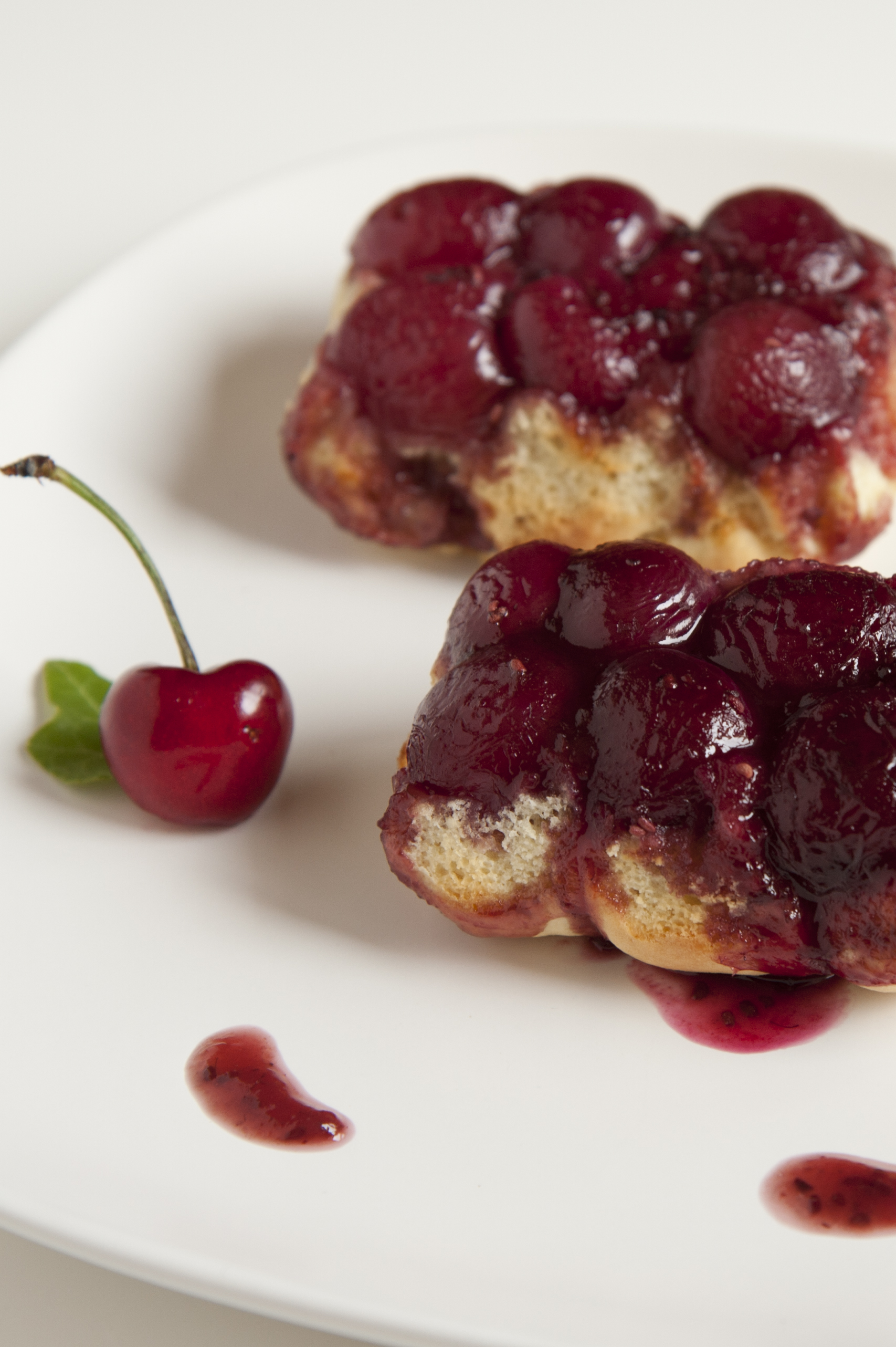 Rivestire di carta forno una tortiera e con un pennello ricoprirne tutto il fondo con la marmellata. Disporvi sopra le ciliegie, con la buccia rivolta verso il basso. Ricoprirle delicatamente con la crema, cercando di livellarla muovendo la tortiera piano dall’alto verso il basso e lateralmente. Infornare a 180° per 45/50 minuti. Una volta pronta, lasciarla raffreddare una ventina di minuti e poi estrarla dalla teglia ancora nel foglio di carta forno. Rovesciarla direttamente sul piatto da portata.