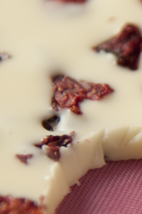 Mi piace un sacco questo cioccolato bianco con tutti questi fruttini deliziosi.