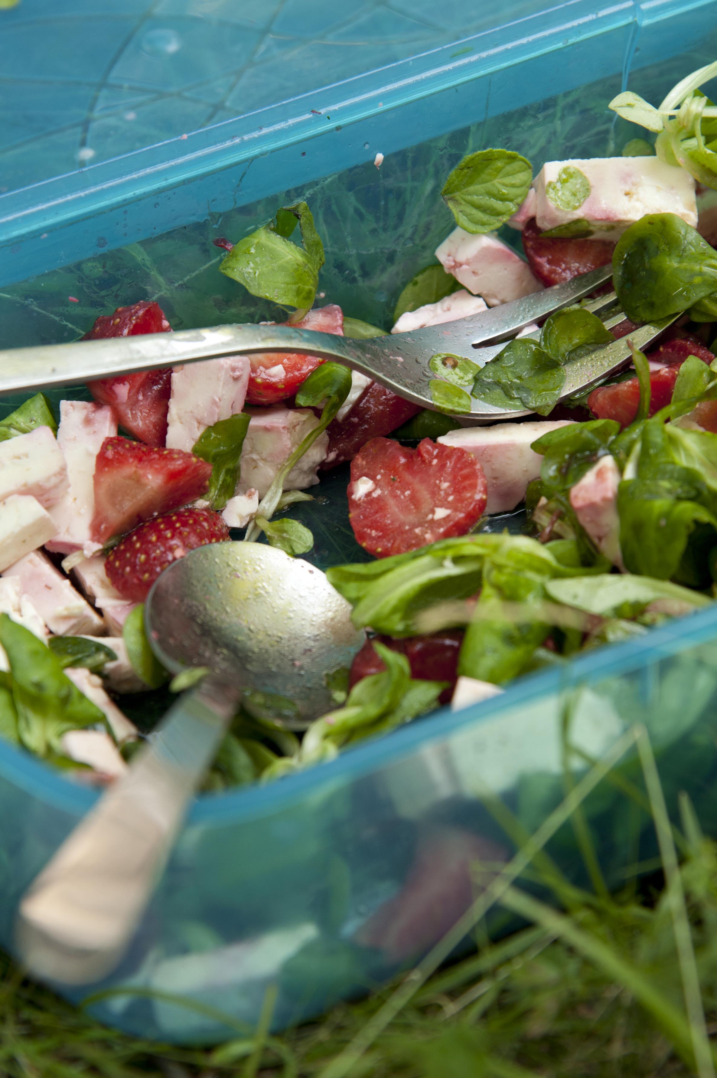 Ricettina rapidissima preparata in occasione di un pic-nik organizzato con Kika e Paola. La ho provata anche nelle versione con i lamponi e mi è piaciuta moltissimo (e per questa versione ho sostituito il limone con l’aceto aromatizzato all’erba cipollina che mi ha regalato Cinzia). Non ditemi che devo darvi la ricetta, perchè come tutte voi, più abili ed esperte, saprete ho solo mischiato insieme tutti gli ingredienti: insalata valerianella ben lavata, 130 gr di feta a cubetti, 10 fragole pulite e tagliate a pezzetti, mentuccia fresca, olio, sale e il succo di uno spicchio di limone.
