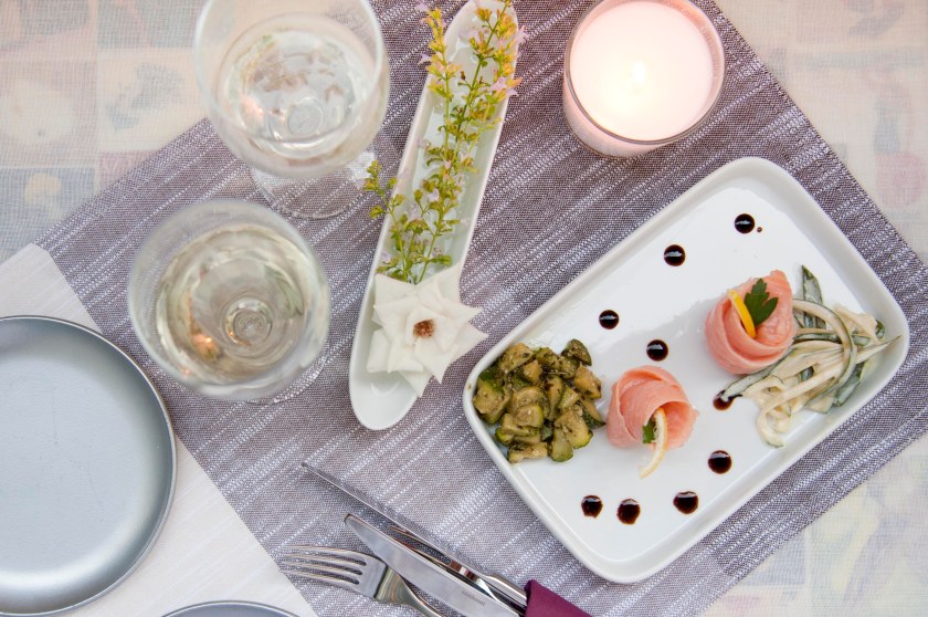 SALMONE MARINATO CON BIS DI ZUCCHINE