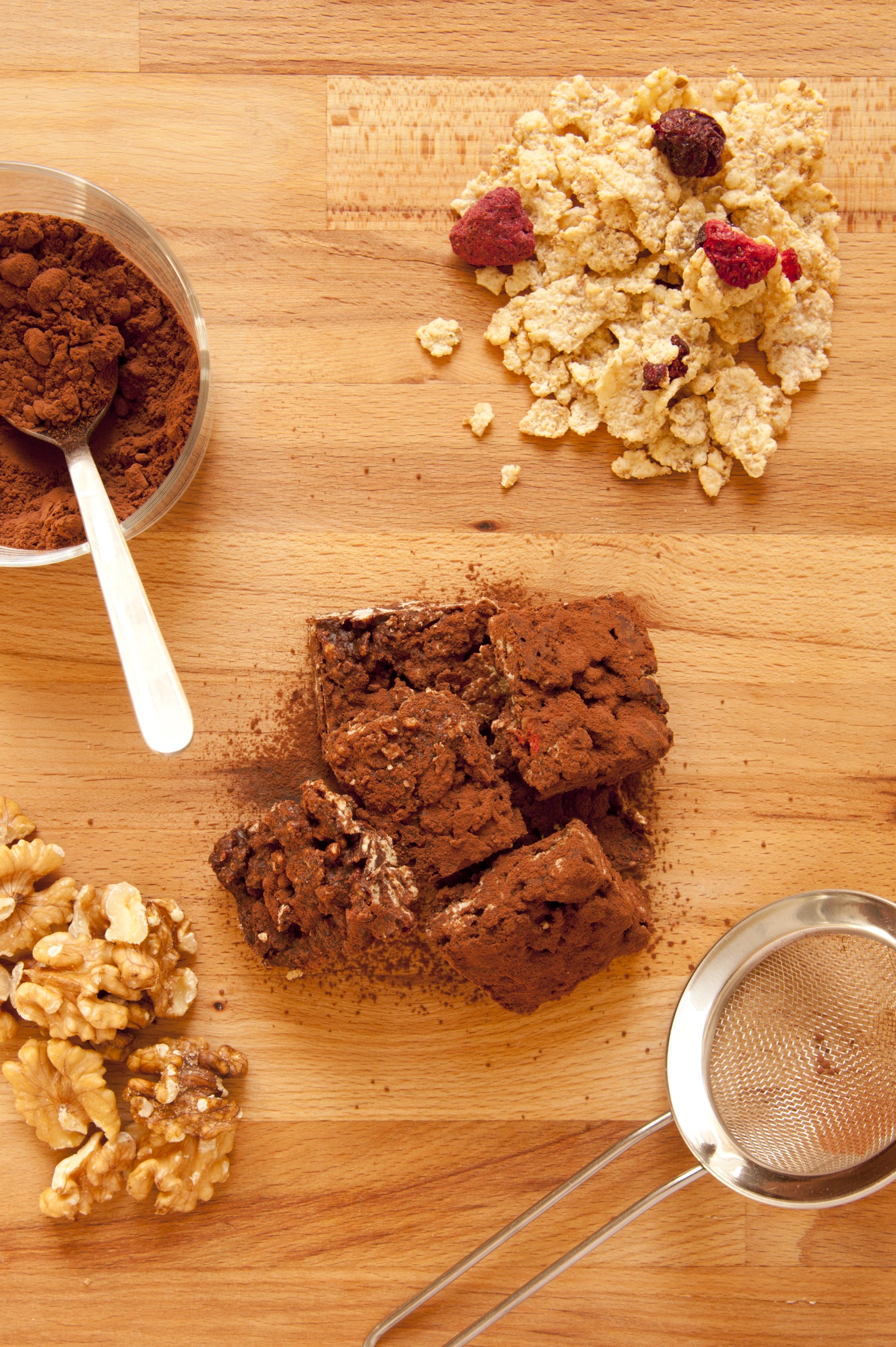 La ricetta mi piace assai, anche nella versione “rose del deserto”, dove fai più o meno lo stesso, ma il composto lo spargi a cucchiaiate (o cucchiainate) sulla carta forno in forme assolutamente irregolari (belle anche con il cioccolato bianco e i frutti rossi disidratati). In ogni caso la massima è la stessa: poco sforzo, risultato ottimo.